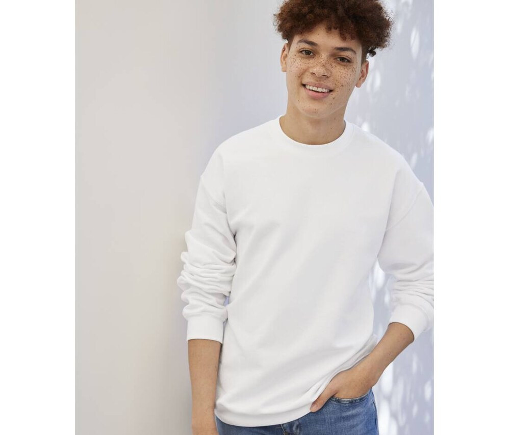 Høytytende svart avtagbar etikett. Klassisk passform, rørformet kropp. 1x1 ribb med spandex mansjetter og bunnbånd. Senket skulder. 2-end ringspun bomullsflis. Børstet innside med 100% bomullsflate, ideell for DTG-printing. 80% Ringspun bomull/20% polyester.